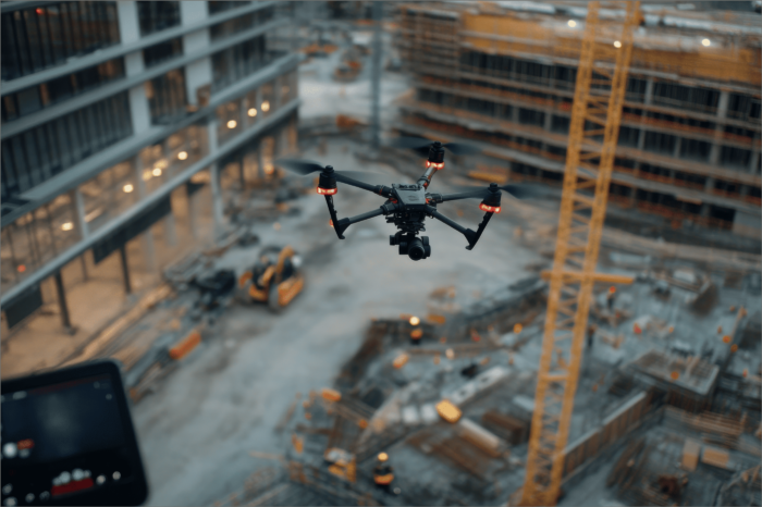 建設現場の進捗状況を空から撮影し、工程管理や安全管理に役立てます。